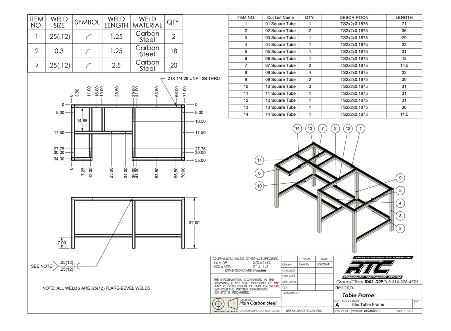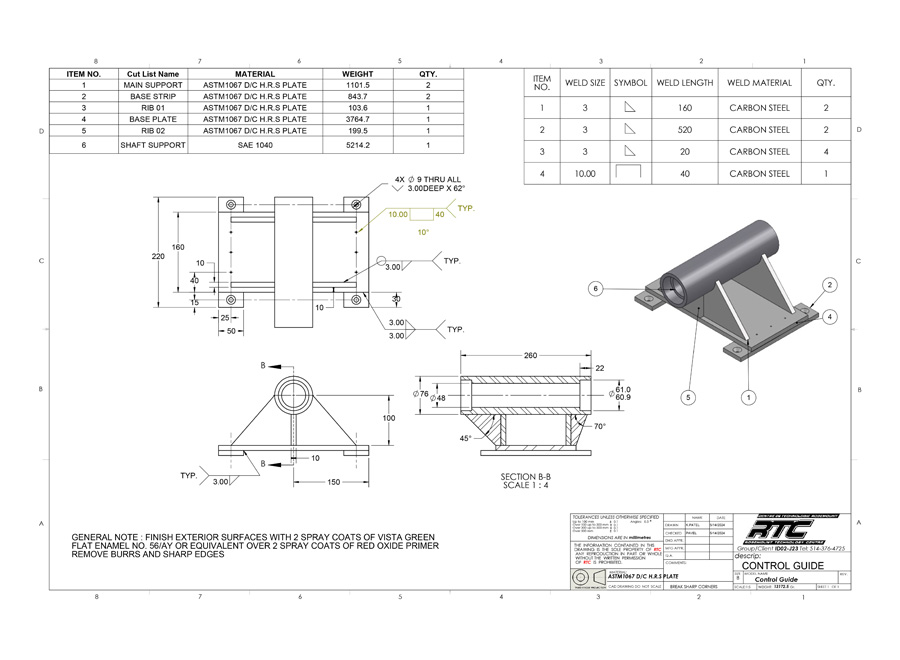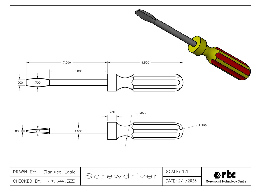 | 3 | Interpreting Technical Drawings • Established mechanical drafting standards and conventions used in industry. • Visualizing parts in three-dimensional views. • Standards for dimensioning, including form, positioning and tolerances. • Relating dimensions between various views of a part or assembly. • Familiarity with standards for notation of details and specifications |