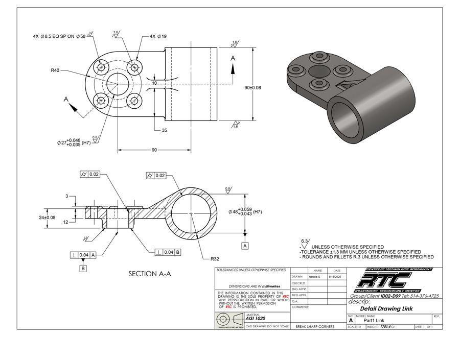 All topics relate to industry and include things such as detail and assembly drawing, development of mechanisms, machine frames along with electrical and electronic and sheet metal drawing. Students will use the current versions of AutoCAD, Solidworks and Autodesk Inventor.