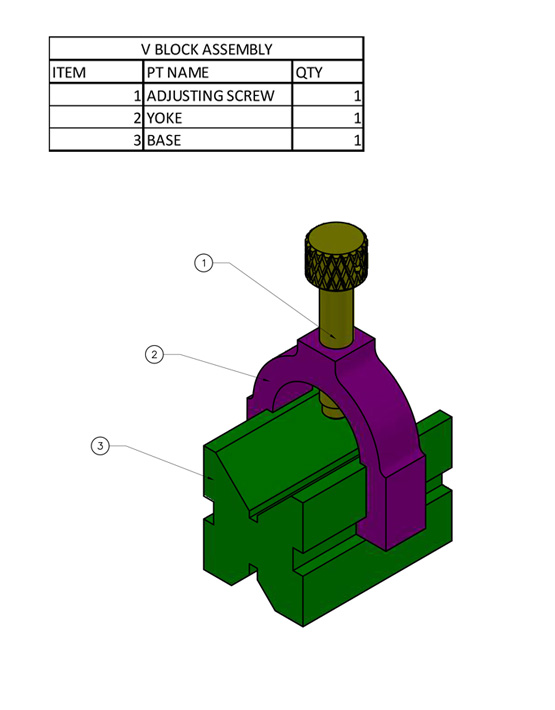 | 10 | Producing Assembly Drawings • Correct interpretation of part details and drawing features. • Arrangement of views and sections on the printed sheet. • Proper use and representation of standard fasteners and parts. • Use of dimensions and notes to clarify assembly details and specifications. • Inserting standard parts from electronic part libraries. |